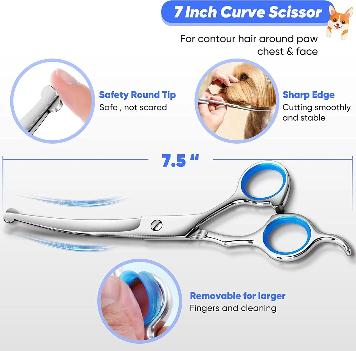 【Safety Round Tip Pet Scissors 】Elke hond grooming schaar heeft een ronde tip ontwerp, de ronde tip zal huisdier te beschermen tegen prikken, vooral in trimmen gevoelige delen (zoals gezicht, oren, ogen), een betere bescherming van het huisdier veiligheid, niet om het huisdier te schrikken.