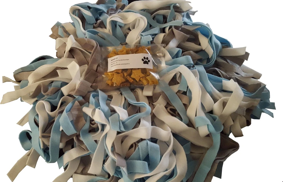Woef-it snuffelmat met zakje hondenkoekjes.