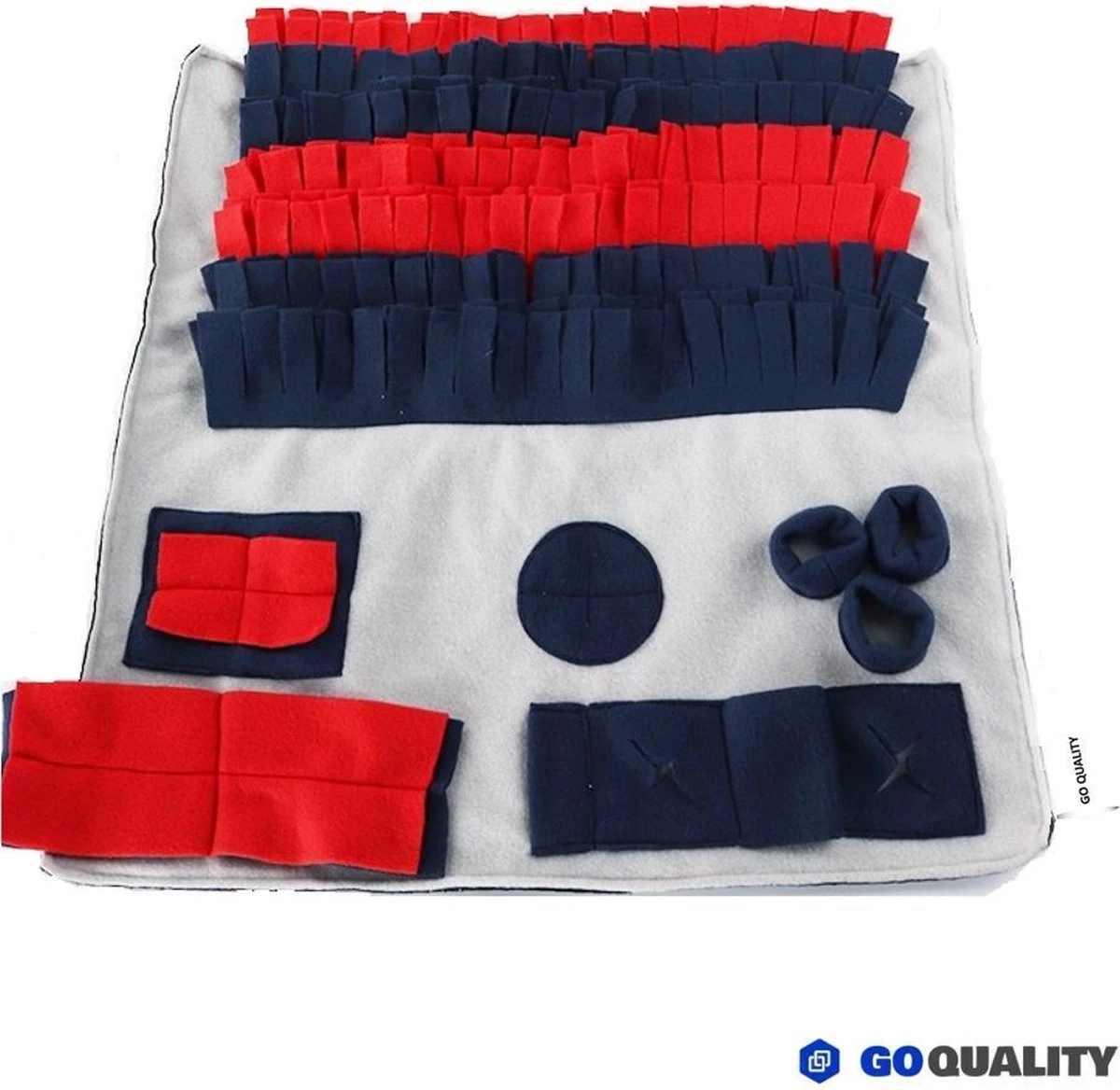 Maak het niet te makkelijk voor je hond. Op deze manier zal hij flink moeten zoeken en is het tevens een goede training voor zijn denkvermogen en zijn conditie. Zo wordt de hond slimmer en gaat hij minder schrokken, omdat hij nu meer moeite moet doen om iets lekker te vinden. 10 minuten snuffelen in deze mat van Go Quality staat gelijk aan een uur buiten spelen. Help de hond nooit en haal de snuffelmat pas weg als hij zijn interesse heeft verloren. Geloof me, hij laat geen brokje achter.