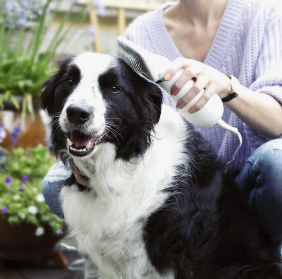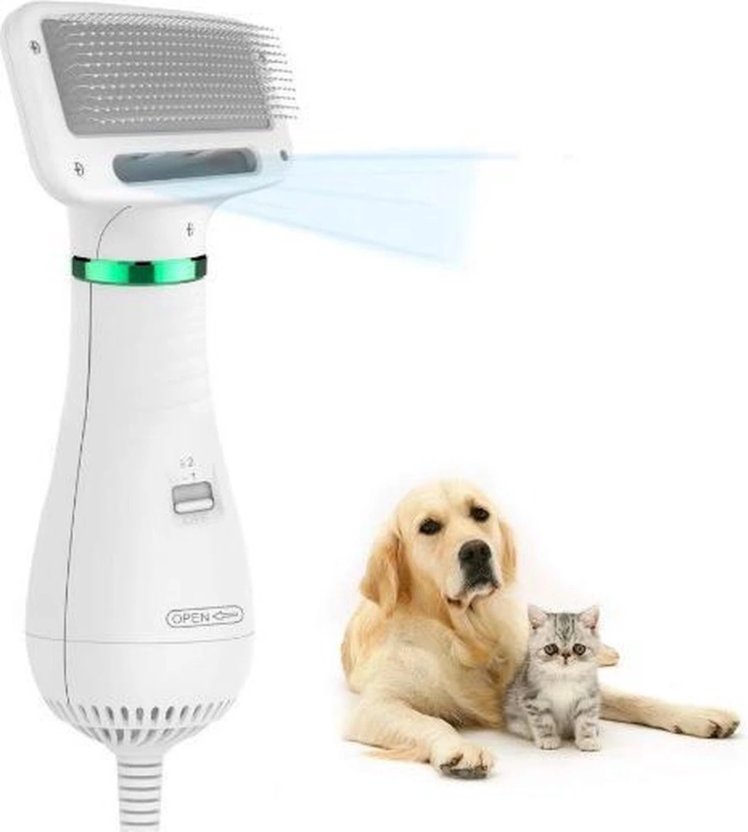 De hondenföhn met borstel is een apparaat wat iedereen met een hond, of andere huisdieren, zou moeten hebben! het is zeer handig en scheelt u mega veel tijd. Uw hond zal het minder erg vinden om geborsteld te vinden, omdat de haren van uw dier veel mooier, gladder en gezonder eruit zal zien. Het is erg aan te raden bij honden die net uit bad komen of net klaar zijn met zwemmen. Ook is het erg aan te raden als u uw hond wekelijks borstelt! Het apparaat heeft ook nog is twee temperaturen voor een optimaal gebruik voor de vacht van uw dier (80 graden, 60 graden). Het apparaat heeft een RVS kam wat eenvoudig de klitten van uw dier zal wegnemen, samen met de warme föhn zal er niks lekkerders zijn voor uw dier!