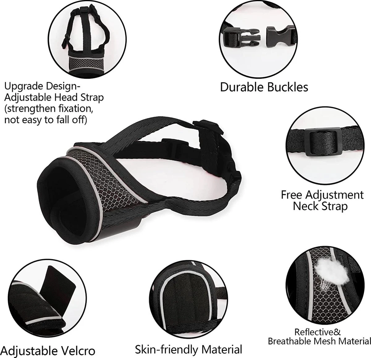 - 【Training Muilkorf】 De snuit bestaat uit drie delen: de mond, de nekband en de hoofdband. Deze drie delen kunnen worden afgesteld om de muilkorf en neus perfect, comfortabel en antislip bij de hond te laten passen. Help uw hond te leren wanneer en wanneer hij moet blaffen door drie zones aan te passen om drinken en hijgen onder controle te houden. Dit voorkomt dat honden mensen of andere kleine dieren bijten om veilige sociale interacties te garanderen