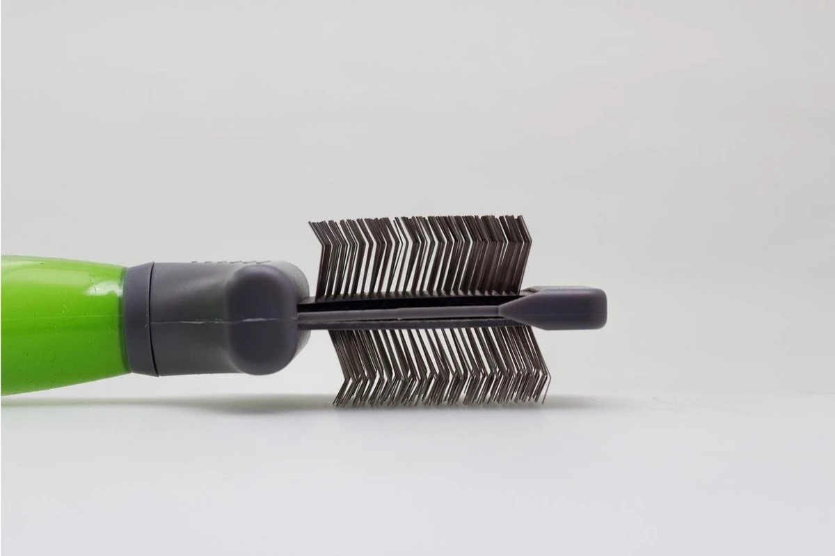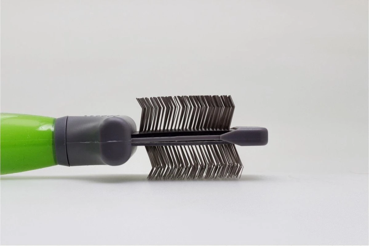 Deze premium-variant heeft 2 zijdes. Gebruik de zwarte borstelkant voor het verwijderen van losse haren, vuil en klitten (ideaal voor lang haar) en gebruik de grijze borstelkant voor kort haar of voor de fijne vacht bij het gezicht en de pootjes.