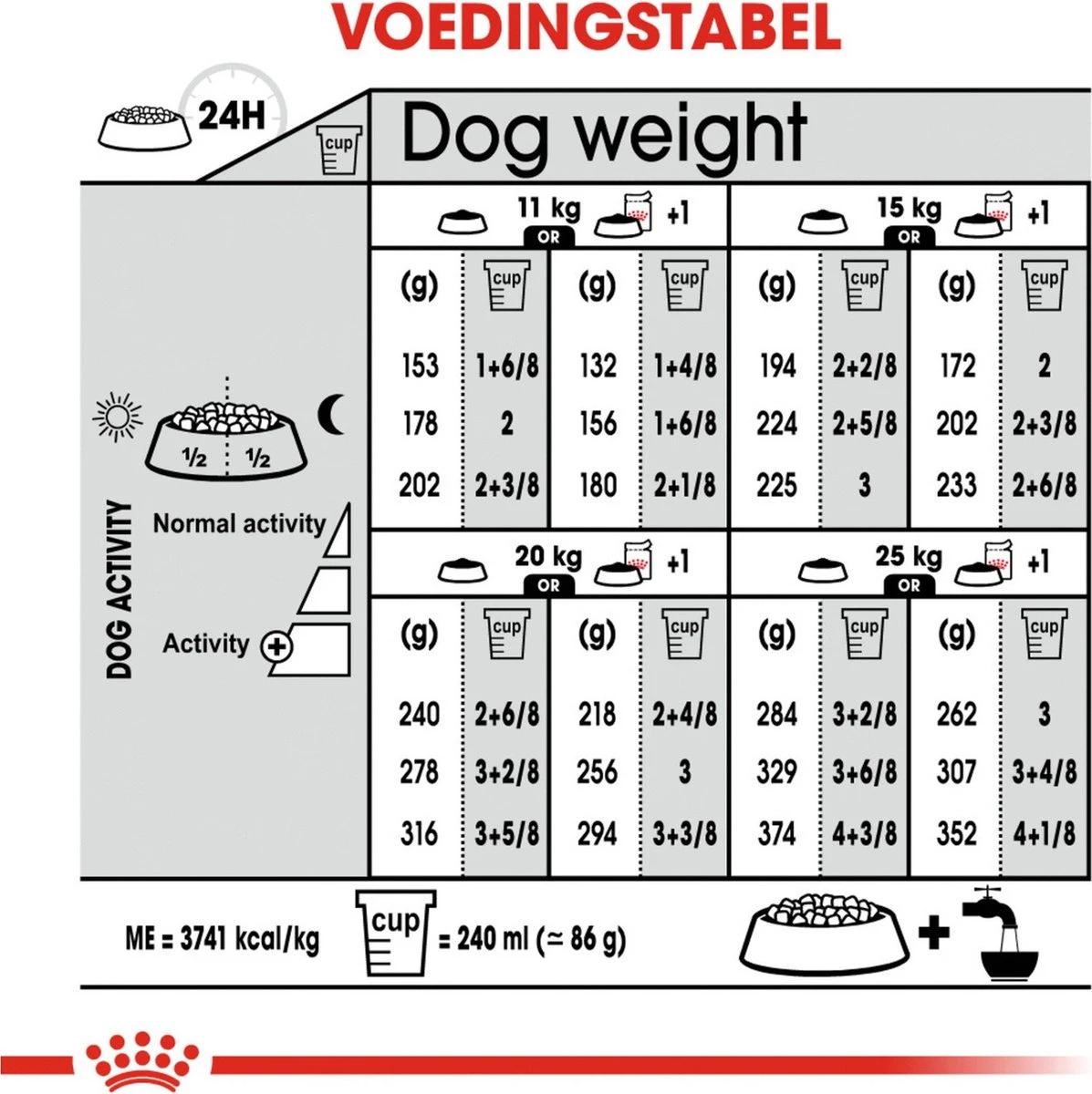 | Grootte honden/kattenras | Middelgrote hondenrassen (15-30 kg) |