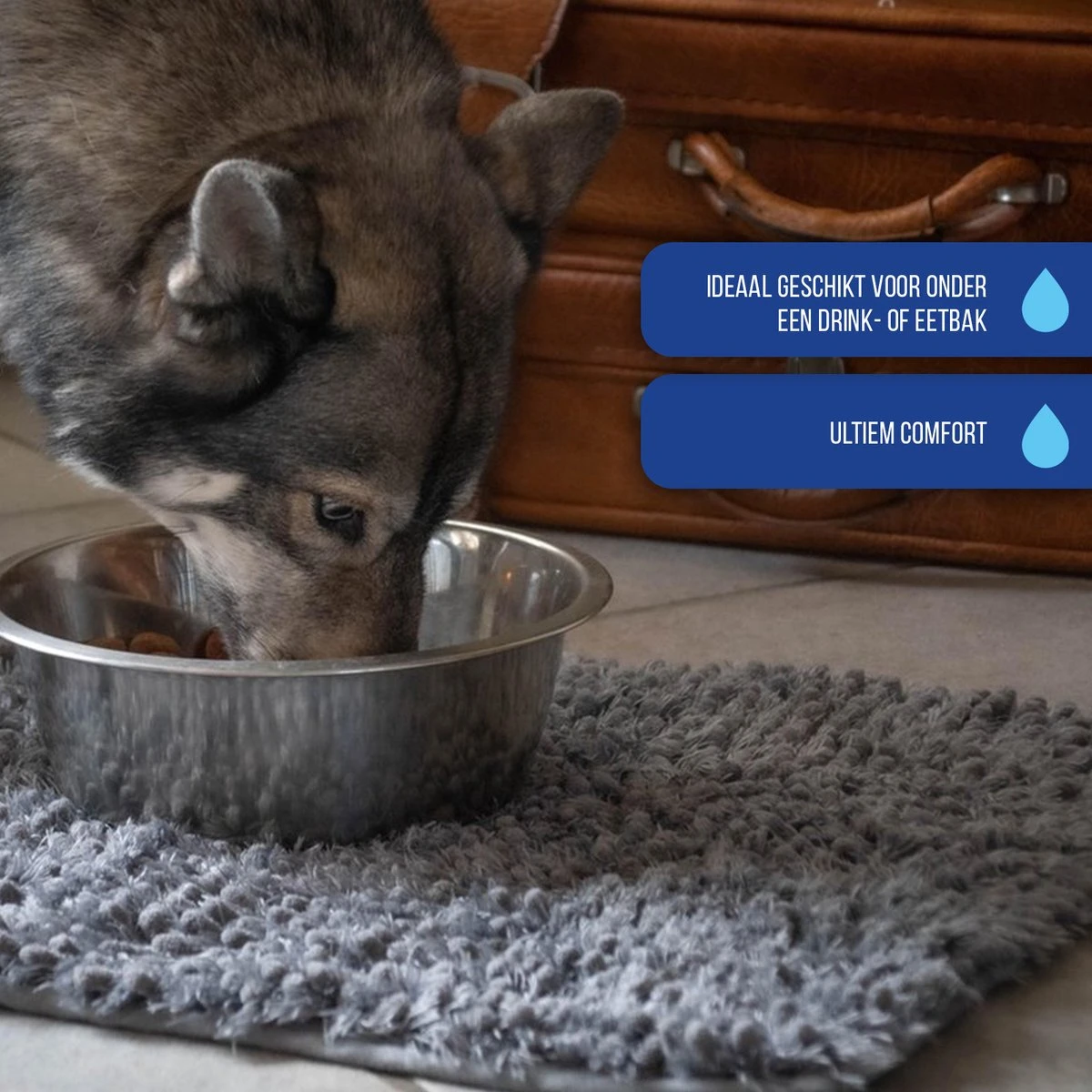 Behandel uw hond als een koning of koningin met de unieke absorberende microvezel anti-knoeimat van Royal Dry.